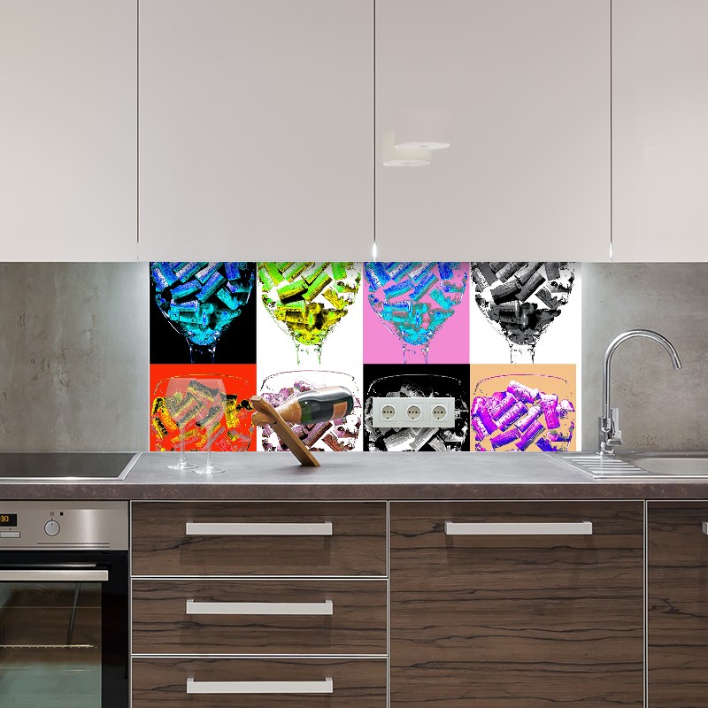 La crédence Bouchons est un élément esthétique indispensable de votre cuisine et se coordonne avec l’ensemble des autres éléments décoratifs. La crédence de cuisine Bouchons s’installe facilement entre le plan de travail et les meubles hauts. Elle protège le mur des éclaboussures de graisse ou d’eau et se nettoie avec une éponge.