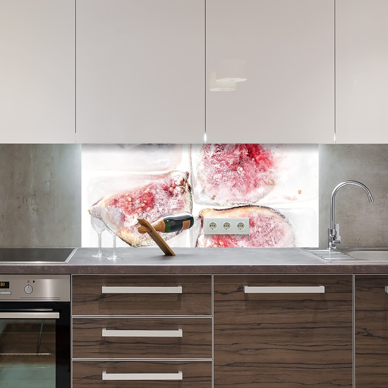 La crédence Figues givrées est un élément esthétique indispensable de votre cuisine et se coordonne avec l’ensemble des autres éléments décoratifs. La crédence de cuisine Figues givrées s’installe facilement entre le plan de travail et les meubles hauts. Elle protège le mur des éclaboussures de graisse ou d’eau et se nettoie avec une éponge.