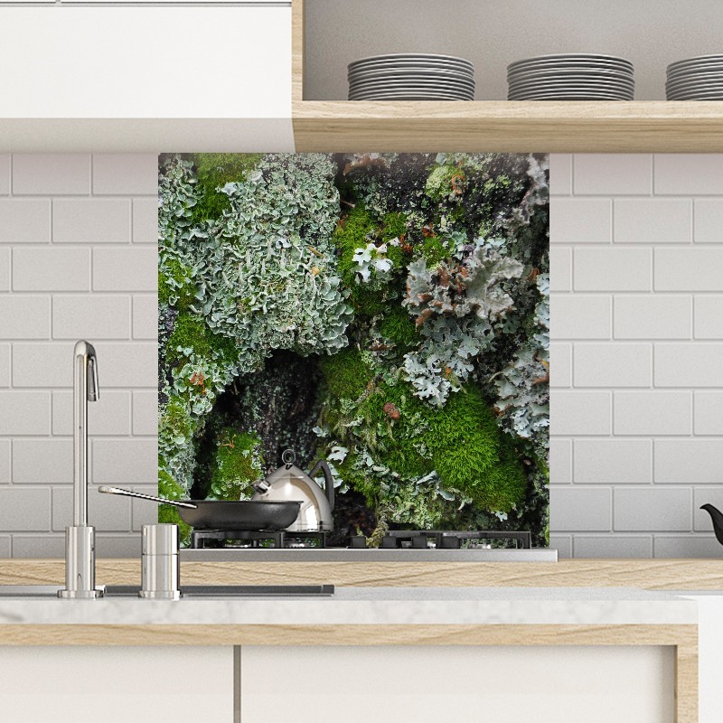 La crédence Mousses est un élément esthétique indispensable de votre cuisine et se coordonne avec l’ensemble des autres éléments décoratifs. La crédence de cuisine Mousses s’installe facilement entre le plan de travail et les meubles hauts. Elle protège le mur des éclaboussures de graisse ou d’eau et se nettoie avec une éponge.