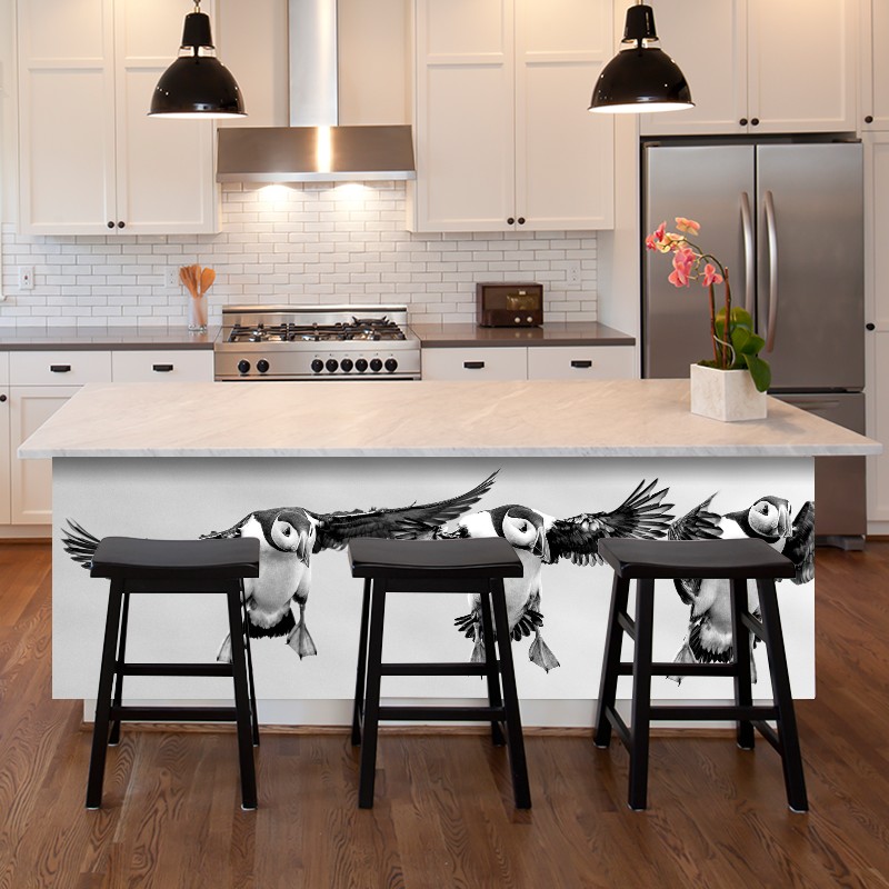 Grâce au-dessous de bar décoratif Vol de macareux, non seulement vous habillez votre bar, mais vous le protégez contre les coups de pieds et les coups de chaises. Le dessous de bar décoratif Vol de macareux est le partenaire idéal de la cuisine américaine.
