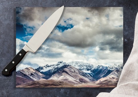 Pratique, la planche à découper Montagnes et nuages peut servir comme plat de service.